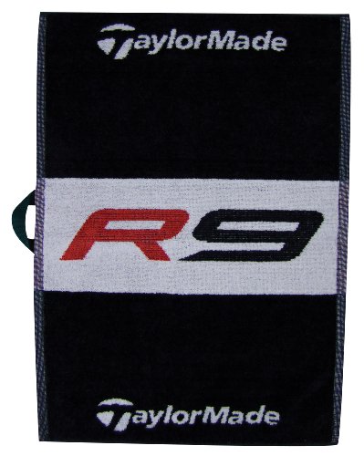 TaylorMade Sale! R9 Golf Towels Orig. .99 - .99; Now .98 - .98! TaylorMade R9 Golf Towels Feature: 500 gram jacquard weave Super soft 100% cotton Twill tape loop Large R9 logo in center of towel TaylorMade logo on top and bottom Models: Cart Towel: Size: 16" x 24" Color: Black Players Towel: Size: 19" x 37" Color: Black TaylorMade... The Best Performance Golf Brand In The World!